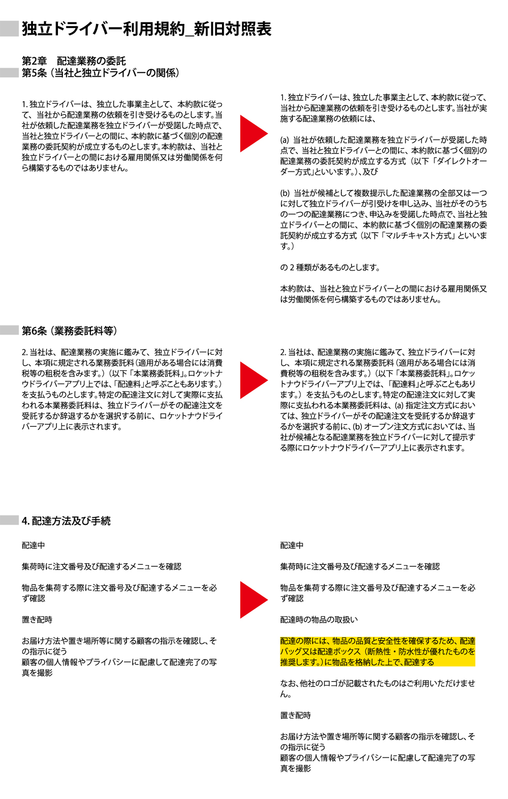 2026年3月6日、ロケットナウ配達員の利用約款が改定されました。